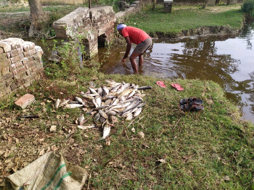 डलमऊ रायबरेली – दीनशाह गौरा के गांव पयागपुर में गंगा तालाब में पाली गई मछलियों की बीती रात संदिग्ध परिस्थितियों में मौत होने से हड़कंप मच गया मत्स्य पालक ने मौके पर जाकर देखा तो उसके होश उड़ गए लाखों की कीमत की मछलियों की मौत होने की सूचना पीड़ित ने मत्स्य पालक के इस्पेक्टर को दे दी है। मामला विकास खंड दीन शाह गौरा की ग्राम पंचायत पयागपुर का है जहां पर मत्स्य पालन विभाग के द्वारा गांव निवासी कमलेश कुमार को गंगा तालाब का मछली पालन के लिए आवंटन किया गया था। जिसमें पीड़ित के द्वारा 50000 की कीमत की मछलियों के बच्चे डाले गए थे बीती रात को जब ग्रामीण तालाब की तरफ पहुंचे तो देखा मरी हुई मछलियां तैर रही थी। इसकी सूचना ग्रामीणों ने कमलेश कुमार को दी मौके पर जाकर देखा तो भारी संख्या में मछलियों की मौत हो चुकी थी। पीड़ित के द्वारा मरी हुई मछलियों को तालाब से बाहर निकाल कर गड्ढे में दफनाने का कार्य किया जा रहा था जिससे कि आसपास क्षेत्र में दुर्गंध ना फैले और संक्रामक बीमारी भी ना हो पीड़ित कमलेश कुमार ने बताया कि बीती रात को कुछ शरारती तत्वों के द्वारा तालाब में जहरीली दवा डाली गई है। जिसकी वजह से मछलियों की मौत हुई है लगभग एक लाख कीमत की मछलियां मरी है। पीड़ित के द्वारा घटना की सूचना मत्स्य विभाग के इंस्पेक्टर एवं थाना प्रभारी गदागंज को दे दी गई है।