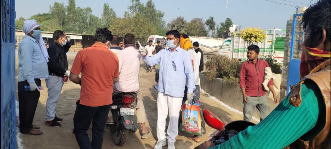 बुधवार को ऊंचाहार व्यापार मंडल के आर्थिक सहयोग से ऊंचाहार सब्जी मंडी में आने वाले सभी किसानों आढ़तियों व सब्जी व्यापारियों को कोरोना वायरस से बचने के लिए माक्स बांटे गए साथ ही पूरे सब्जी मंडी परिसर सहित शौचालय स्नानघर बाथरूम नल को सेनेटाइज किया गया बुधवार सुबह से ही ऊँचाहार व्यापार मंडल अध्यक्ष धर्मेंद्र मौर्य अपने सभी व्यापार मंडल पदाधिकारियों के साथ मंडी परिसर के गेट पर खड़े होकर सब्जी मंडी में आने वाले जितने भी किसान व व्यापारी थे सबको एक-एक कर माक्स वितरित किया साथ ही श्री मौर्य ने कहा की बिना माक्स लगाए हुए किसी भी व्यापारी या किसान को मंडी में आने की अनुमति नहीं होगी सभी लोग माक्स लगा कर मंडी में आए आप कहीं भी जाएं या घर पर रहे माक्स जरूर लगाएं और शासन की गाइडलाइन का पालन करें साथ ही श्री मौर्य ने बताया कि पूरे मंडी परिसर को सेनेटाइज करवाया गया है इसी तरह प्रतिदिन पूरी मंडी परिसर को सेनेटाइज कराया जाएगा मंडी परिसर का निरीक्षण करने एसडीएम ऊँचाहार केशव नाथ गुप्ता भी पहुंचे मंडी की व्यवस्था से संतुष्ट नजर आए इस मौके पर ऊँचाहार व्यापार मंडल अध्यक्ष प्रभारी व मंडी संचालक धर्मेंद्र मौर्य, महामंत्री राजू सोनी, हरिशंकर साहू, शिव कुमार गुप्ता सहित व्यापार मंडल के अन्य पदाधिकारी मौजूद रहे