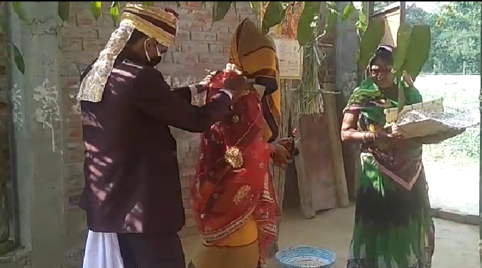 सरेनी,रायबरेली- सरेनी थाना क्षेत्र के डिघिया मीठापुर गाँव में संपन्न हुई शादी।उन्नाव से रायबरेली पहुंची बरात।रविवार 26 अप्रैल को लाॅकडाउन के बीच सरेनी क्षेत्र के अन्तर्गत डिघिया गांव में शहनाई गूंज उठी।सोशल डिस्टेंसिंग की जद में रहकर वर वधु ने एक दूसरे को जयमाला पहनाई।करीब 5 घंटे शादी की रस्म अदायगी हुई इसके बाद वधु को लेकर वर अपने घर रवाना हो गया।सरेनी थाने के डिघिया गांव में आज सब कुछ सामान्य था ,जानकारी के मुताबिक रविवार पूर्वाह्न करीब 11:30 बजे गांव में अचानक एक बोलेरो एक स्विफ्ट डिजायर वा तीन बाइकों से सवार बराती गांव के राम नरेश यादव के दरवाजे पहुंच गए तब गांव वालों को बारात आने की भनक लगी।बरात उन्नाव जिले के बिहार थाने के नया खेड़ा गांव से आई थी।सोशल डिस्पेंसिंग कि जद में रहकर वर अनुज कुमार पुत्र स्व. बजरंग बहादुर ने वधू अनुपम को जयमाला पहनाई वहीं पंडित विनोद कुमार ने विधि विधान से दोनों की शादी संपन्न कराई।वधू पक्ष ने आनन-फानन सभी रस्में पूरी कर बारात को विदा कर दिया।अनुज मौर्य/सन्दीप फ़िज़ा रिपोर्ट