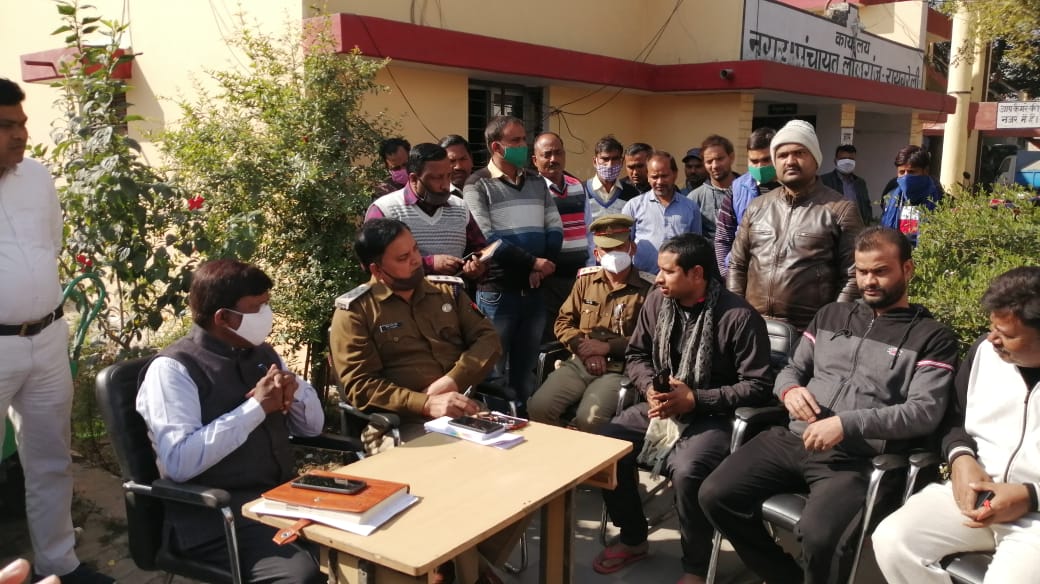 लालगंज,रायबरेली। नगर पंचायत गेट पर प्रदर्शन कर रहे सफाई कर्मचारियों के नेताओं से वार्ता के दौरान एक युवक ने नगर पंचायत अध्यक्ष की पिटाई कर दी।मौजूद लोगों ने युवक को पकड़ कर पुलिस के हवाले किया। शिकायती पत्र पर पुलिस ने चार नामजद समेत अन्य अज्ञात के खिलाफ मुकदमा दर्ज किया है। संविदा सफाई कर्मचारी शीतला प्रसाद निवासी सरेनी बीती 8 दिसंबर को बाबा का पुरवा मोहल्ला में निजी गेस्ट हाउस में सफाई के दौरान करंट से झुलस गया था। लखनऊ अस्पताल मे इलाज के दौरान उसकी मौत हो गई थी। मुआवजा व नौकरी की मांग को लेकर बुधवार को सफाई कर्मचारी नगर पंचायत के गेट पर शव रखकर प्रदर्शन कर रहे थे। नगर पंचायत अध्यक्ष रामबाबू गुप्त ने वार्ता करने के लिए कर्मचारी नेता मिश्रीलाल वाल्मीकि तथा राजेश गब्बर को बुलाया था। अचानक अरविंद नामक एक युवक ने अध्यक्ष श्रीगुप्त पर हमला करते हुए थप्पड़ रसीद कर दिया।अरविंद नगर पचांयत में तैनात सफाई कर्मचारी राजेंद्र का पुत्र है। हमलावर युवक को पकड़ कर पुलिस के हवाले कर दिया गया। अध्यक्ष ने मृतक के एक परिजन को आउट सोर्सिंग के तहत नौकरी का आश्वासन दिया है। अध्यक्ष पर हुए हमले के मामले में अधिशाषा अधिकारी अनुराग शुक्ल ने हमला करने वाले युवक अरविंद पुत्र राजेंद्र समेत धरने की अगुवाई करने वाले मिश्रीलाल, राजेश गब्बर, नीरज आदि अज्ञात लोगों के विरूद्ध शिकायती पत्र दिया है। कोतवाल अरूण सिंह ने बताया कि मुकदमा दर्ज किया जा रहा है।