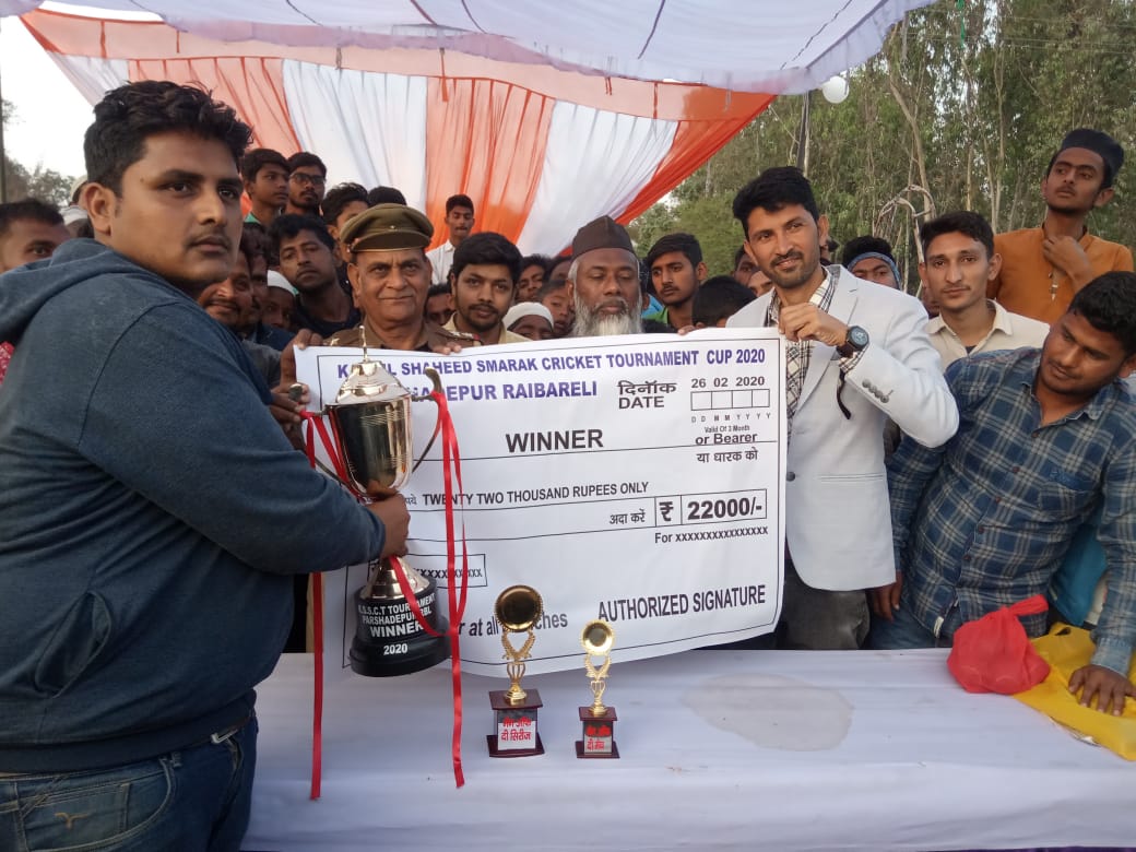 जिसमे करहया  की टीम के कप्तान सौरभ ने टास जीतकर फील्डिंग करने का निर्णय लिया।बैटिंग करने उतरी प्रतापगढ़  की टीम ने  निर्धारित 15 ओवर में 146 रन बनाये।।जिसमें टीम के कप्तान सुरजीत सिंह ने 33 गेंद खेलकर 66 रन बनाया। बब्बू ने 13 गेंदों पर 25 और विक्की ने 7 गेंदों पर 25 रनों के योगदान दिया।करहया की तरफ से रोहित ने शानदार  गेंदबाज़ी करते हुए 3 ओवर में 6 रन देते हुए 3 विकेट झटके।लछ्य का पीछा करने उतरी करहया की टीम ने 14 ओवर खेलकर 131 रन ही  बना पाई। जिसमे शकील ने 14 गेंदों पर शानदार 34 रन बनाए।प्रतापगढ़ के विक्की ने शानदार गेंदबाजी करते हुए 3 महत्वपूर्ण विकेट झटके।अच्छी बैटिंग और फील्डिंग का प्रदर्शन करने वाले विक्की को मैन ऑफ द मैच का पुरुस्कार वार्ड नंबर सात के सभासद अरुणेश जायसवाल ने दिया।इसके अलावा पूरी प्रतियोगिता में सबसे अच्छा प्रदर्शन करने वाले परशदेपुर के खिलाड़ी मो जावेद को मैन ऑफ द सीरीज़ का पुरुस्कार दिया गया।प्रतियोगिता के मुख्य अतिथि मौलाना मुहम्मद इस्लाम नदवी व आयोजक सभासद शमसी रिजवी ने विजेता टीम को ट्रॉफी व 22000 रुपये नगद पुरस्कार दिया।उप विजेता टीम को चौकी के उप निरीक्षक राधेश्याम बाजपेई ने 11000 रुपये का पुरस्कार दिया।टूर्नामेन्ट के आयोजक सभासद शम्सी रिज़्वी ने प्रतियोगिता की सभी टीमो व सहयोगियो का आभार जताया।अंपायर की भूमिका अब्दुल समी खान व बाबर हादी ने ,कमेंटेटर कलीम कुरैशी व सोनू अंसारी,स्कोरर की भूमिका नसीम व सलमान राइन ने निभाई इस मौके पर सह आयोजक इरफान,आज़म,सलमान,सोनू,नसीम, के साथ साथ हसन ग़ुलाम, डॉ इतरत नक़वी,आशू जायसवाल,मुर्तज़ा अंसारी,आरिफ मेहदी,ज़ैद हारिस,जावेद,नियाज़ राइन, फ़िरोज़,लालबाबू राइन,इसहाक राइन,राशिद, सज्जू खान आदि के साथ साथ हज़ारो की संख्या में दर्शक मौजूद रहे।