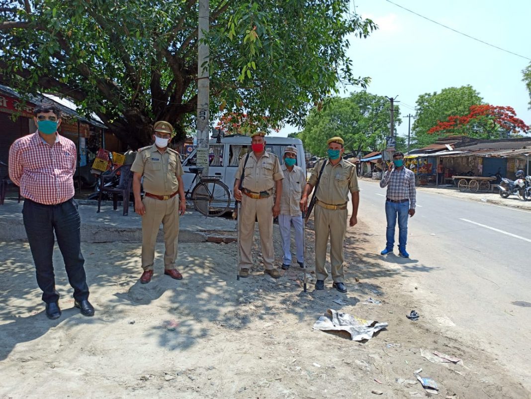 तिलोई अमेठी:तिलोई तहसील के अंतर्गत लॉक -डाउन का पालन करने के लिए एसडीएम तिलोई सुनील कुमार त्रिवेदी ने इन्हौना, राजफत्तेपुर, शंकरगंज, मोहनगंज, शाहमऊ तिलोई आदि जगहो पर समस्त पुलिस बल के साथ कर रहे है।निरीक्षण,दुकानदारों को दिए सख्त निर्देश ग्राहक मास्क लगा कर आये तभी दे समान व दुकान के बाहर बनाये गोले जिससे हो सोशल डिस्टेंसिंग का हो पालन,यही नही अाने जाने वाले राहगीरों को उपजिलाधकारी ने रोक रोक कर मास्क लगा कर चलने की दी सख्त हिदायत। जिलाधिकारी अमेठी के निर्देशों के अनुसार ही समय पर ही खोले व बन्द करे दुकान। सोशल डिस्टेंसिग का पालन न करने पर होगी दुकानदार पर कार्यवाही।