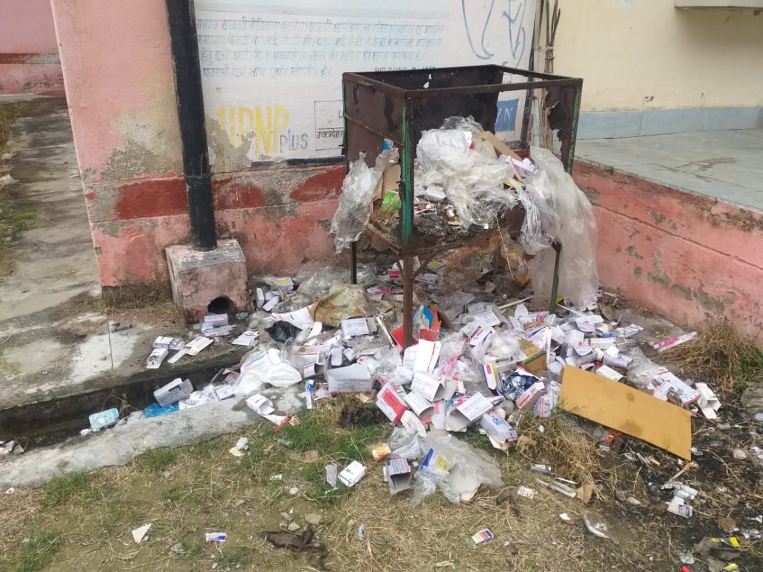 खुले में फेंका जा रहा निश प्रयोजन बायोमेट्रिक कचरा ।