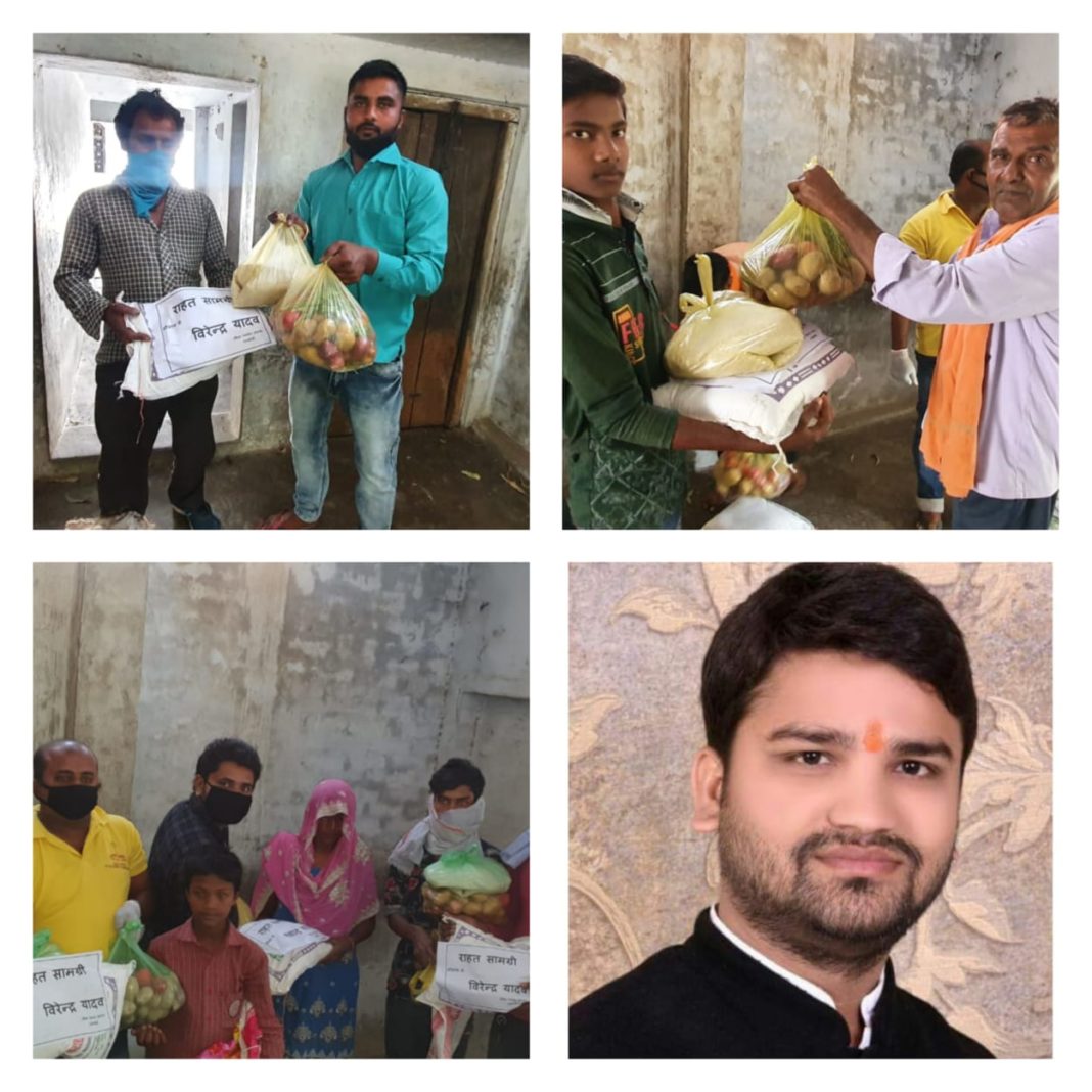 खीरो रायबरेली -जिला पंचायत सदस्य वीरेंद्र यादव मुंशीगंज रायबरेली द्वारा जरूरतमंदों को दी गई राहत सामग्री जिसमें 5 किलो आटा 3 किलो चावल 2 किलो आलू 1 किलो प्याज टमाटर धनिया मिर्चा आदि टीम वीरेंद्र यादव यूथ ब्रिगेड द्वारा राजेश मिश्रा, मनीष साहू, आदित्य शर्मा, अजय गुप्ता, यीशु गुप्ता आदि लोगों ने खीरों कस्बा मदनापुर, सगुनी, मथुरा खेड़ा आदि गावों में 200 जरूरतमंद लोगों में राशन सामग्री का वितरण किया राशन सामग्री पाका जरूरतमंद लोगों के चेहरे खिल उठे।