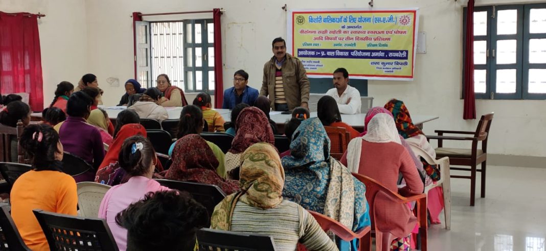 महराजगंज रायबरेली-अमावां बाल विकास परियोजना के अन्तर्गत किशोरी बालिकाओं के लिए वीरांगना सखी सहेली का स्वस्थ स्वच्छता एवं पोषण विषय पर कार्यशाला का आयोजन विकास खण्ड अमावां सभागार में किया गया। जिसमें सामुदायिक स्वास्थ्य केंद्र अमावां के डा. जायसवाल जी में ने बताया कि किशोरियों में एनीमिया के लक्षण बचाव के उपाय कैसे करें । खण्ड प्रेरक शरद चन्द्र तिवारी ने किशोरी बालिकाओं को शौचालय के लाभ बताते हुए कहा कि शौचालय स्वच्छता के साथ सम्मान का सूचक है जिससे आप अपने आत्म सम्मान की रक्षा स्वयं कर सकती बाल विकास परियोजना अधिकारी ने कहा कि पोषण आंगनबाड़ी केन्द्र पर पोषाहार वितरण किया जाता है। जिसमें शारीरिक विकास में सहायक होगा।