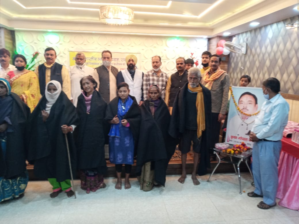 व्यापार मंडल के पूर्व जिला अध्यक्ष की प्रथम पुण्यतिथि पर बेसहारा लोगो को वितरण किये गए कम्बल