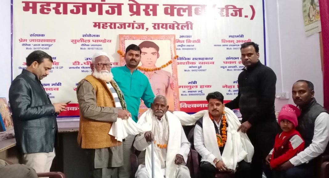 71 वे गणतंत्र दिवस पर महराजगंज प्रेस क्लब पदाधिकारियों द्वारा पुलिस चौकी क़े सामने जियाउल बिल्डिग स्थित कार्यालय पर झंडारोहण किया गया। इस दौरान पदाधिकारियों द्वारा 1991 में उरी सेक्टर जम्मू कश्मीर में 7 आतंकियों को मार गिरा शहीद हुए मोती लाल यादव क़े परिजनो को अंगवस्त्र व प्रतीक चिन्ह भेंट कर सम्मानित भी किया गया। शहीदों क़े परिजनो क़े सम्मान समारोह में क्षेत्र क़े जियापुर मजरे मोन निवासी शहीद मोतीलाल यादव क़े 99 वर्षीय पिता रामभरोसे एवं शहीद क़े पुत्र संतोष यादव का माल्यार्पण भी किया गया। इसके पूर्व शहीद की प्रतिमा पर संरक्षक प्रेम जायसवाल एवं समाजसेवी हाजी जियाउल हक एवं व्यापार मंडल अध्यक्ष पवन साहू द्वारा पुष्प अर्पित किया गया। इस दौरान शहीद को याद कर परिजनो की आखे छलक आई। शहीद क़े पिता रामभरोसे ने बताया की 10/11/1991 को 24 साल की उम्र में आतंकियों से लोहा लेते समय मेरे पुत्र मातृभूमि पर न्यौछावर हो गया जिस पर मुझे आज भी गौरव है। शहीद क़े बेटे संतोष ने बताया की जब वह एक वर्ष क़े थे तब पिता का साया उनके सिर से उठ गया था। उन्होने बताया की पिता की जगह उनकी माता सीआरपीएफ में सेवा दे रही है। इस मौके पर संयोजक सुशील पांडेय, अमित सिंह, अमित त्रिपाठी, आनन्द सिंह, टीपी यादव, शिवम अवस्थी, राजेश मिश्रा, अशोक यादव, राघवेंद्र सिंह, संतोष सिंह, पवन साहू, पप्पू यादव, नेहा मिश्रा, इमानुल हक, फैजान, जैनुल हक, इरशाद अहमद सहित अन्य लोग उपस्थित रहे।